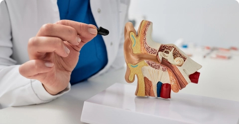 Bone conduction implants are another different class of surgical hearing implants. These implants work by transmitting sound signals as vibrations through the skull bone to reach the cochlea (inner ear).
